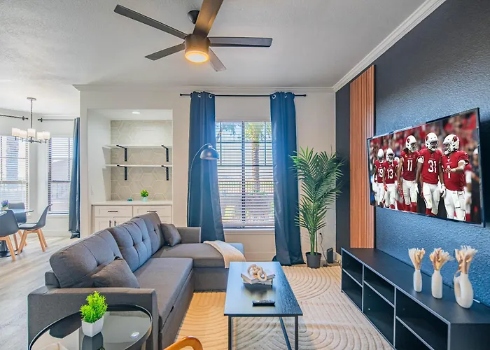 Charming 2B King Bed With Pool Hot Tub, Gym, Parking Appartement Glendale bevindt zich binnen 25 minuten loopafstand van Phoenix Scottsdale Golf en biedt wifi. Niet ver van dit appartement van 105 m² vindt u Jobing.com Arena.